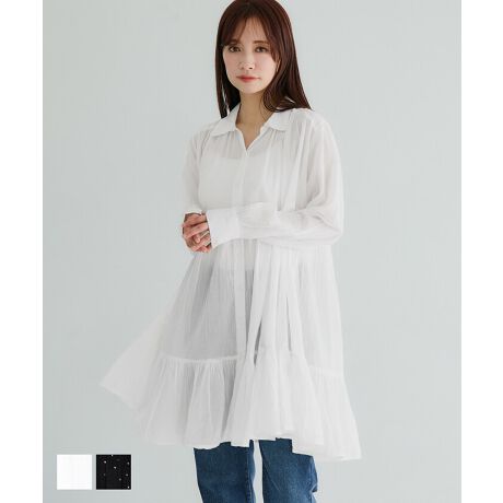 ふんわりとしたティアードデザインが魅力のシャツチュニック