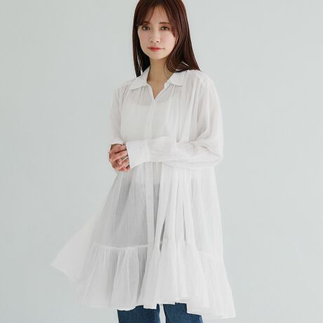 ふんわりとしたティアードデザインが魅力のシャツチュニック