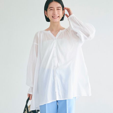 ふんわりとしたシルエットが魅力のギャザーブラウス