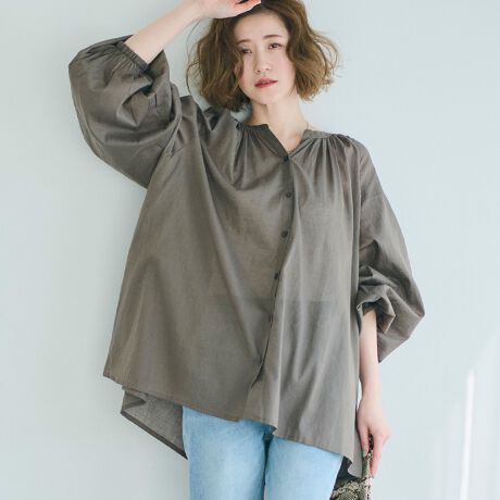 ふんわりとしたシルエットが魅力のギャザーブラウス
