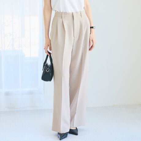 センタープレスが施され、脚をすっきりと長く見せてくれるワイドパンツ。