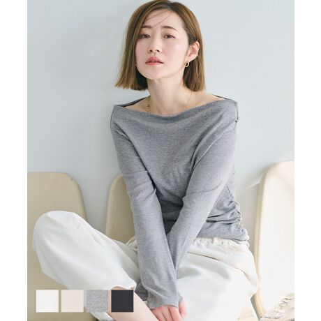 大人の抜け感を演出するオフショルダートップス