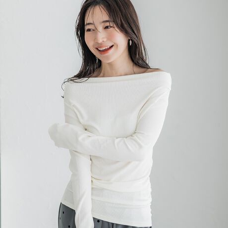 大人の抜け感を演出するオフショルダートップス
