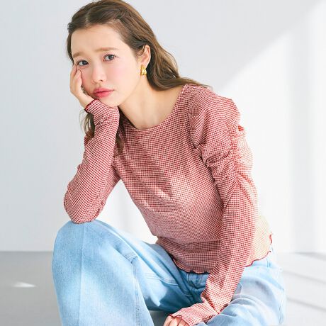 シンプルな中に女性らしいディテールを効かせた長袖トップス。