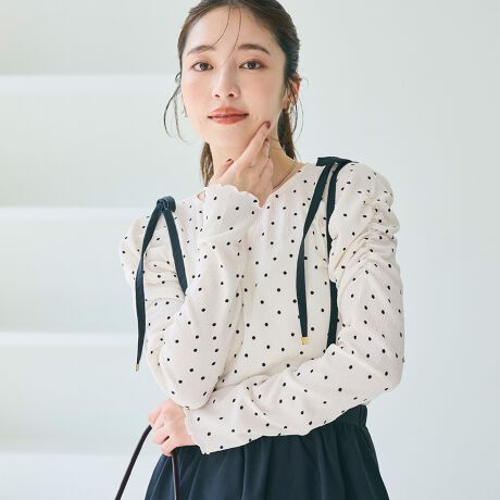 シンプルな中に女性らしいディテールを効かせた長袖トップス。
