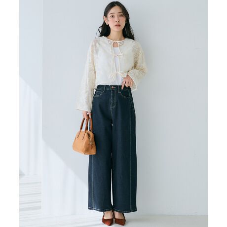 縦のラインを強調するステッチがポイントのワイドパンツ