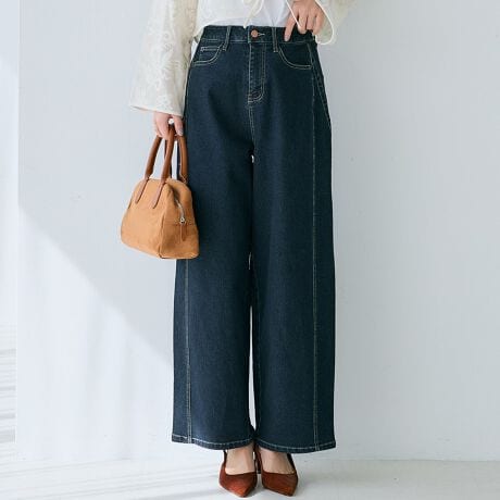 縦のラインを強調するステッチがポイントのワイドパンツ