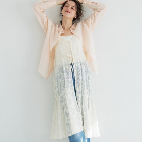 軽やかな透け感がこなれ感を生み出し、レイヤードスタイルにぴったりなデザイン。
