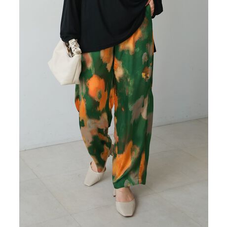 水彩アート柄サテンパンツ