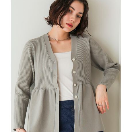 膨らみとストレッチのある糸で編んだニットカーディガン。軽さと立体感のある糸で仕立てているので、トレンド感のあるペプラムシルエットが美しく広がります。ややハイウエストからのペプラムシルエットなので、スタイルアップして見せてくれます。気になるお腹周りもさりげなく隠してくれるのも嬉しいポイント。前を閉めてトップスとして着ても、前開きにして軽羽織として使うのも◎