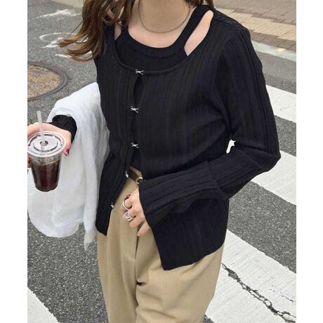 柔らかな肌触りと洗練されたデザインが魅力のアメスリニットアンサンブルホックカーディガン。アンサンブルとしても単品でも着回し自在。ホックを留めても、軽く羽織っても、どちらのスタイルもシーンに合わせてお楽しみいただけます。オフィスでは、ジャケット代わりに使える落ち着いた雰囲気を持ちながら、カジュアルな日常コーデにもピッタリです。