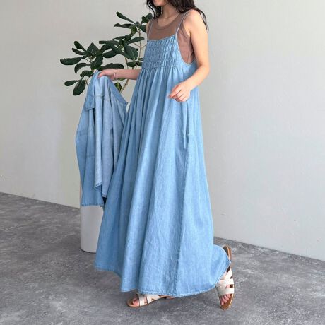 大人カジュアルスタイルにオススメのデニムキャミワンピ