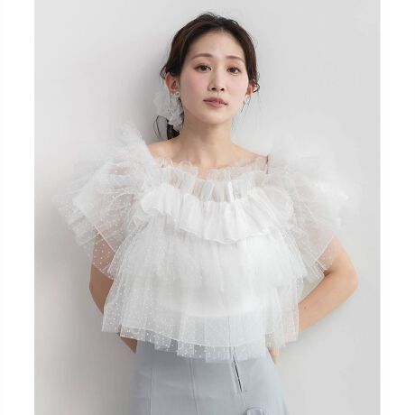 フェミニンムード漂うエアリーなチュールフリルブラウス。
