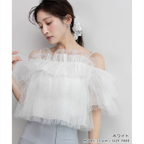 <25春夏新作>2WAYショルダーチュールフリルブラウス