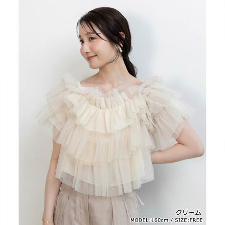 フェミニンムード漂うエアリーなチュールフリルブラウス。