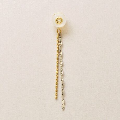 ホワイトゴールドとイエローゴールドのアイテムどちらにもお使いいただけます。デザインチェーンを2種類使い上品な揺れ感で華やかさをプラスしてくれるアイテムです。