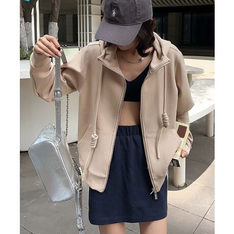 デニムパンツやジョガーパンツと合わせて、シンプルでスタイリッシュなカジュアルコーディネートに。ジップアップタイプなので、気温に応じて調整可能で、アウトドアやスポーツにもぴったりです。
