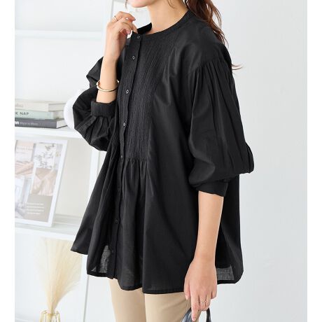 ブザム部分の刺繍が上品なアクセントに!ギャザーやタックが女性らしいふんわりとしたシルエットを叶えます。