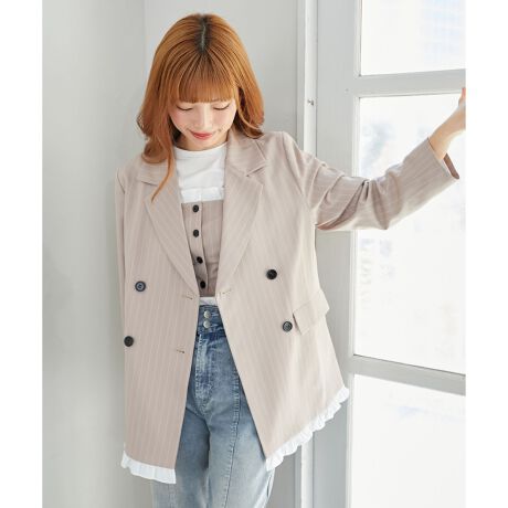 ミニマルなジャケットにバイカラーのフリルデザインがモード&ガーリーな印象を与えるトレンドライクな1枚。