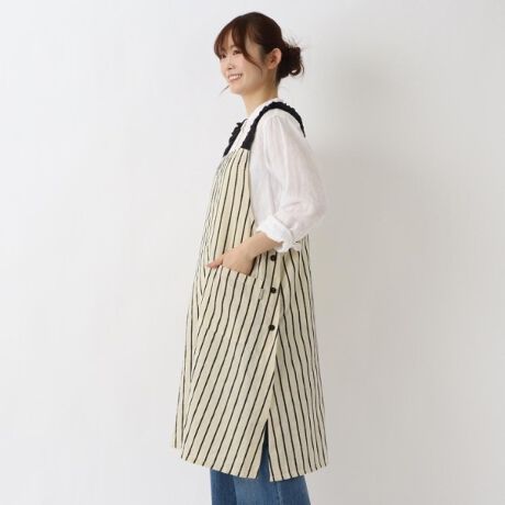 部屋着としても一日中着用できる着心地にこだわったシンプルで上品なエプロンスタイルです。