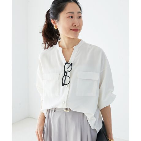 フィブリルサテンダブルポケットシャツ