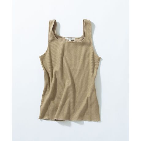 直線的な襟ぐりのラインが美しい、ラメタンクトップ。タンブラーコットンブロードのシャツ羽織りやシャツワンピースのインナーに着用すると、襟元のラメでコーディネートが程よく華やかに引き立ちます。今年らしいレイヤードのインナーとしてオススメの1枚です。合わせやすさと程よいラメ感が嬉しいアイボリー(#002)、大人カジュアルに欠かせないライトグレー系(#003)に、新色として合わせやすいブラック(#005)、ブラウン(#030)を追加した計4色展開です。