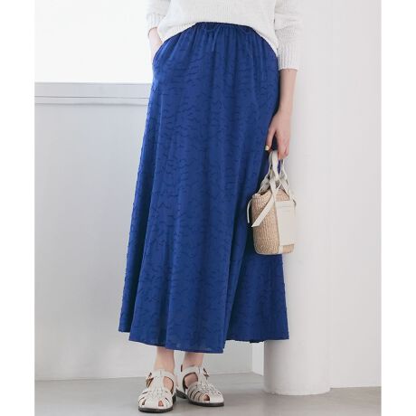 柔らかなタッチのフラワージャカード素材が春の気分を盛り上げてくれる、フレアスカート。腰回りはすっきり仕上げつつも、裾に向かって揺れるフレアシルエットが軽快な印象です。存在感のあるジャカード素材なので、シンプルなトップスと好相性。同素材のブラウスと合わせれば、ワンピース風のスタイリングも楽しめます。しっとりとした鮮やかさが魅力のブルー系(#070)、爽やかで合わせやすいアイボリー系(#002)、ニュアンスのあるグレー系(#004)の3色展開です。