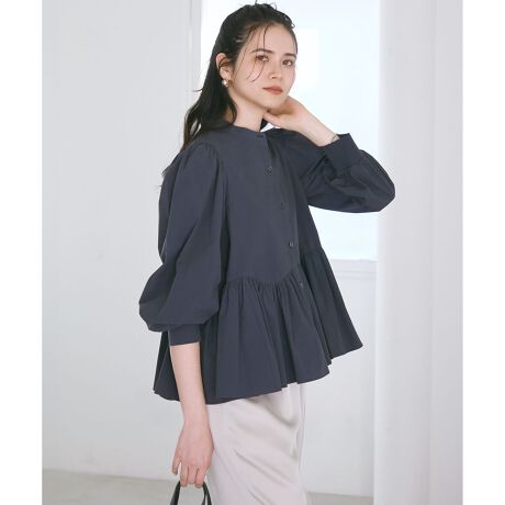 軽やかにふわっと広がるペプラム切り替えや、分量感のあるパフスリーブが大人かわいいデザインブラウス。ナチュラルなコットン100%の素材なので、着心地も良い仕上がりになっています。1枚で着映えるデザインなので、デニムと合わせたシンプルなスタイリングや、ビスチェをレイヤードしたコーディネートもおすすめ。落ち着いたネイビーのようなダルブルー系(#074)、爽やかなホワイト系(#001)、春夏らしいムードを高めるブルー系(#070)の3色展開です。