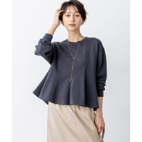 裾に向かってフレアを出し、程よい甘さをプラスしたデザイントップスです。スポーティーになり過ぎずシルエットも崩れにくいので、デニムのワイドパンツやキュプラフィブリルクロスのドロストパンツと合わせて1枚でサマになるデザインです。上品なリラックスムードが漂うライトグレー(#003)、カジュアルの中に大人っぽさのあるグレー系(#004)の2色展開です。