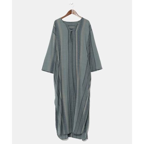 [型番:IMC-5102-2025]南インドの織生地を使用したワンピース。綿素材で肌触りと通気性が良く、サイドにポケットもついており機能性も抜群。ストライプと織柄の組み合わせがポイントの一枚。