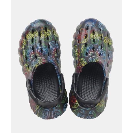 エキゾチックな柄が目を引く、サボサンダル。厚みがありクッション性もよく、疲れにくい。バックストラップ付きで、アクティブシーンでも大活躍。