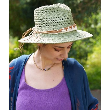 [型番:CKOP5106-2025]ペーパー素材の軽やかなハット。編みこまれた紐デザインがリゾート感を演出します。サイズ調整可能。サイズ調整可能