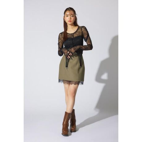 【Y2Kなディテールを取り入れたタイトミニスカート】■ポイント繊細なレースを裾からレイヤード風にのぞかせエッジを効かせたタイトミニスカート。太めの共布ベルトがウエストの細見えと、足長効果を発揮し一気に華やかな印象に。■ディテールハイウエストのタイトミニスカートですが可動域にもこだわり歩きやすくなるようサイジング。後ろウエストはゴム仕様なのでストレスフリーにご着用いただけます。■スタイリング裾のレースのカラーとトップスや小物の色をリンクさせるコーデは統一感があり今っぽいコーデに仕上がります。■生地透け感:なし裏地:あり伸縮性:なし光沢感:なし厚さ:薄手■商品のお気に入り登録お気に入りアイテムの再入荷・在庫1点などの通知を受け取ることができます。[注意事項]※画像の商品はサンプルです。実際の商品と仕様、加工が若干異なる場合があります。※画像の商品は光の照射や角度、お使いのモニター環境により、実物と色味が異なる場合がございます。※着用、お取り扱いの際は、アテンションタグをご確認ください。