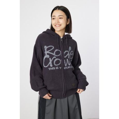 ■デザイン:畦編みで仕上げたカジュアルなニットのジップフーディー。トレンド感のある型にスプレー風のタギングロゴがクールにプリントされた一枚。さっと羽織れる簡易アウターで、寒暖差のある時期に使い勝手の良いアイテムです。■素材特性:アクリル素材を使用しています。■おすすめスタイリング:ボリューム感のあるアイテムなので、ショートボトムにロングブーツを合わせたコーディネートがおすすめ。ワイドバギーを合わせるのもイチオシです。※毛玉などが発生した場合は、はさみなどできれいにカットしてください。柔らかいミドルゲージのニット商品ですので、長時間ハンガーに掛けておくと、伸びる可能性がございます。こまめにハンガーから外すなど、取り扱いには十分ご注意下さい。プリントの風合いやカラー及び位置には個体差が有りますが、二次加工特性によるものです。プリントを重ねるとくっついたり色移りの可能性がありますので、注意してください。プリント商品の為、着用・洗濯によリ白化する場合がございます。