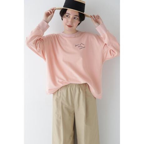 やや長め丈のオーバーサイズなトップスです。裾が広がって見えるデザインなので、ボトムにオーバーで着てリラックス感のあるシルエットです。優美な女性という意味の花ことばを持つ桜『fleurs de cerisier』と植物園『jardin botanique』のフランス語を刺繍でランダムにデザインしたロゴです。