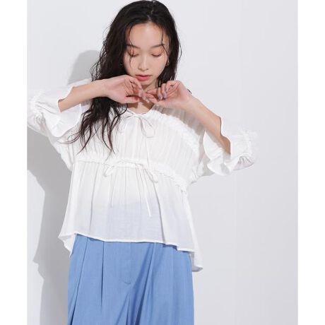 楊柳シャーリングリボンブラウス