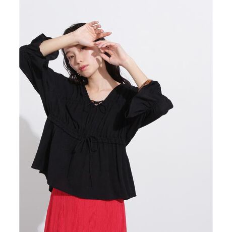 楊柳シャーリングリボンブラウス