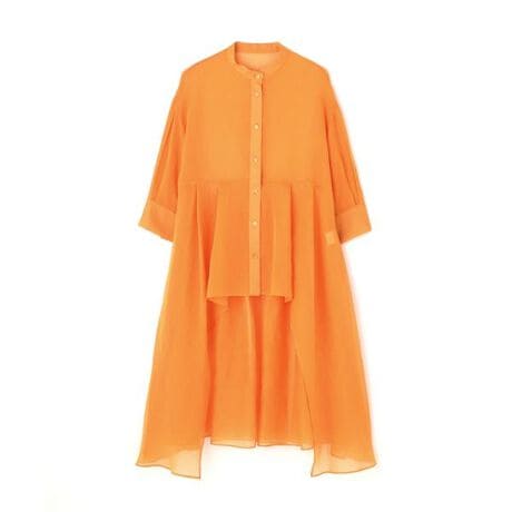 大胆な前後差が目を引く、軽やかなオーガンジーブラウス