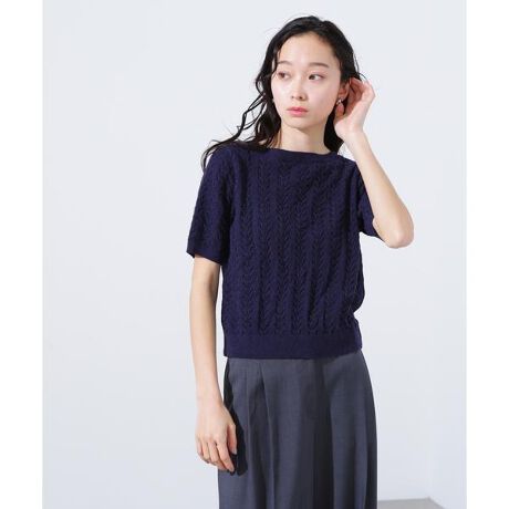 ミニケーブル半袖ニット