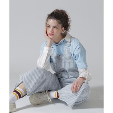 ・ダブルポケットのヒップとUネックが特徴であるワイドシルエットのオーバーオール。
