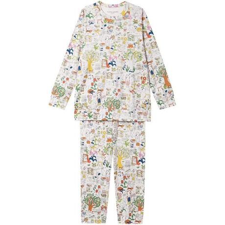 【パジャマ(ロング袖ロングパンツ)】デザイナー津森千里氏が幼少期に大好きだった本の世界観をモチーフに森の中の動物や植物、夜空に輝く星座をテーマに表現した柄が豊富に揃っています。テーマ:春<ワンダーフォレスト>物語に登場する赤毛の女の子がよく遊ぶ森には不思議なお花がたくさん咲いています。そのお花に集まる鳥やキツネたちに出逢えるワンダーフォレストたくさんのオリジナリティあふれる図柄が、不思議な世界に誘います。・本体に、ふわっとやわらかな綿100%のスムース素材を使用・女の子が森を散歩したり、くつろいだりしている様子を表現した柄【サイズ詳細】S:身幅48.0cm 着丈65.0cm 肩幅39.0cm 袖丈56.5cm ウエスト53.0cm ヒップ93.5cm 股下(レングス)69.5cmM:身幅52.0cm 着丈66.0cm 肩幅40.0cm 袖丈57.0cm ウエスト58.0cm ヒップ97.5cm 股下(レングス)69.5cmL:身幅56.0cm 着丈67.0cm 肩幅41.5cm 袖丈57.0cm ウエスト63.0cm ヒップ101.5cm 股下(レングス)69.5cmLL:身幅60.0cm 着丈68.0cm 肩幅43.0cm 袖丈57.5cm ウエスト68.0cm ヒップ106.5cm 股下(レングス)69.5cm3L:身幅64.0cm 着丈69.0cm 肩幅44.5cm 袖丈57.5cm ウエスト73.0cm ヒップ112.0cm 股下(レングス)69.5cm4L:身幅68.0cm 着丈70.0cm 肩幅46.0cm 袖丈58.0cm ウエスト78.0cm ヒップ117.0cm 股下(レングス)69.0cm※出来上がり寸法を表示しております※サイズ詳細の寸法には多少の差異がございます※アイテムによって柄の出方が異なりますのでご了承ください。