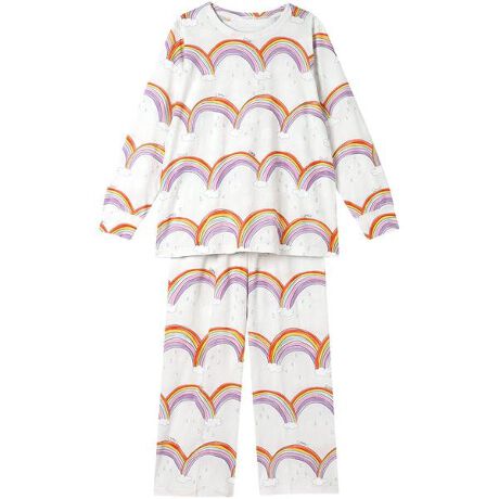 【パジャマ(ロング袖ロングパンツ)】毎日をもっと楽しく過ごせるように。嬉しいとき。不安なとき。ひとりのとき。家族といるとき。どんなときでもHAPPYなものを身につけて、笑顔になってもらいたい。デザイナー“津森千里”氏のそんな気持ちを表現したブランド。デザイナー津森千里氏が幼少期に大好きだった本の世界観をモチーフに森の中の動物や植物、夜空に輝く星座をテーマに表現した柄が豊富に揃っています。・本体に、綿100%のパイルを使用・空に広がる虹を手描き風のやさしいタッチで表現した柄・トップス両脇にスリットが入ったデザイン【サイズ詳細】M:身幅52.0cm 着丈66.0cm 身丈68.5cm 肩幅40.0cm 袖丈57.0cm ボトム脇丈95.0cm 裾まわり48.0cm ウエスト58.0cm ヒップ97.5cm 股下(レングス)66.0cmL:身幅56.0cm 着丈67.0cm 身丈68.5cm 肩幅41.5cm 袖丈57.0cm ボトム脇丈96.0cm 裾まわり50.0cm ウエスト63.0cm ヒップ101.5cm 股下(レングス)66.0cm※出来上がり寸法を表示しております※サイズ詳細の寸法には多少の差異がございます表面フラッシュにご注意ください台所等で火を扱う場合には、表面の毛羽に引火することがありますので、十分にご注意ください。また、裏返して着用しないでください。「表面フラッシュとは」生地の表面毛羽に着火した火が、毛羽から毛羽へ、非常に早いスピードで、瞬時に火が走る現象です。パイル・タオル地や表面を起毛した素材で起こりやすく、綿やレーヨンなど植物せんい使用の素材にも、注意が必要です。これにより、火傷や火事になることも考えられます。炊事や暖房機具等の火には、十分ご注意ください。※アイテムによって柄の出方が異なりますのでご了承ください。