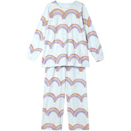 【パジャマ(ロング袖ロングパンツ)】毎日をもっと楽しく過ごせるように。嬉しいとき。不安なとき。ひとりのとき。家族といるとき。どんなときでもHAPPYなものを身につけて、笑顔になってもらいたい。デザイナー“津森千里”氏のそんな気持ちを表現したブランド。デザイナー津森千里氏が幼少期に大好きだった本の世界観をモチーフに森の中の動物や植物、夜空に輝く星座をテーマに表現した柄が豊富に揃っています。・本体に、綿100%のパイルを使用・空に広がる虹を手描き風のやさしいタッチで表現した柄・トップス両脇にスリットが入ったデザイン【サイズ詳細】M:身幅52.0cm 着丈66.0cm 身丈68.5cm 肩幅40.0cm 袖丈57.0cm ボトム脇丈95.0cm 裾まわり48.0cm ウエスト58.0cm ヒップ97.5cm 股下(レングス)66.0cmL:身幅56.0cm 着丈67.0cm 身丈68.5cm 肩幅41.5cm 袖丈57.0cm ボトム脇丈96.0cm 裾まわり50.0cm ウエスト63.0cm ヒップ101.5cm 股下(レングス)66.0cm※出来上がり寸法を表示しております※サイズ詳細の寸法には多少の差異がございます表面フラッシュにご注意ください台所等で火を扱う場合には、表面の毛羽に引火することがありますので、十分にご注意ください。また、裏返して着用しないでください。「表面フラッシュとは」生地の表面毛羽に着火した火が、毛羽から毛羽へ、非常に早いスピードで、瞬時に火が走る現象です。パイル・タオル地や表面を起毛した素材で起こりやすく、綿やレーヨンなど植物せんい使用の素材にも、注意が必要です。これにより、火傷や火事になることも考えられます。炊事や暖房機具等の火には、十分ご注意ください。※アイテムによって柄の出方が異なりますのでご了承ください。