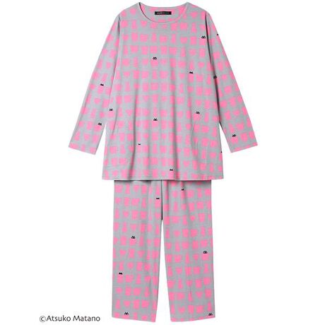 【パジャマ(ロング袖ロングパンツ)】クリエーター“俣野温子”氏がデザインする、甘くなりすぎない大人かわいいテキスタイルとカラーで、くつろぎ時間を楽しく過ごせるパジャマ&ルームウェア・綿100%のスムース素材を使用・ティーカップの中で黒猫のMEMEのモチーフがかくれんぼをしているテキスタイル【サイズ詳細】M:身幅53.5cm 着丈72.0cm 身丈74.5cm 肩幅39.0cm 袖丈56.5cm ボトム脇丈95.0cm 裾まわり43.0cm ウエスト58.0cm ヒップ100.5cm 股下(レングス)67.5cmL:身幅57.5cm 着丈72.0cm 身丈74.5cm 肩幅40.5cm 袖丈56.5cm ボトム脇丈95.5cm 裾まわり45.0cm ウエスト63.0cm ヒップ104.5cm 股下(レングス)67.5cmLL:身幅61.5cm 着丈73.0cm 身丈75.5cm 肩幅42.0cm 袖丈57.0cm ボトム脇丈96.0cm 裾まわり48.0cm ウエスト68.0cm ヒップ109.5cm 股下(レングス)67.5cm※出来上がり寸法を表示しております※サイズ詳細の寸法には多少の差異がございます