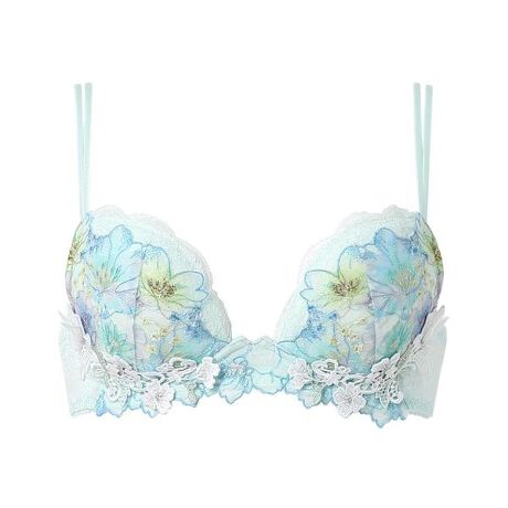 −麗しのバラ園− モナコ日差しにあたたかみが増して春の訪れを感じる季節。モナコのバラ園では花々が咲きはじめ、やわらかな香りに満たされます。鳥のさえずりや楽しげに舞う蝶が出迎えてくれる庭園に咲く色とりどりのバラを、豪華な立体アップリケや多色使いのプリントで華やかに描きました。●大胆な谷間を軽いつけごこちでキープ サポートパネルがバストを脇から寄せて、エックス状の深くセクシーな谷間をメイク●サイズに合わせたバストメイクを <(C・D)カップ>…脇寄せしながら、厚みのあるパッドで谷間のボリュームをアップ。高さのあるバストもメイク <(E□G)カップ>…脇をしっかりサポートし、シルエットすっきり。バストがこぼれにくい構造。パッドをはずした状態で記載のサイズとなるよう設計していますが、パッドを入れてもお使いいただけます・春の訪れを感じるような華やで彩りのあるプリント&ラメ糸のチュールエンブロイダリーレース・アンダー部分には草花モチーフのケミカルアップリケに花を描いたチュールエンブロイダリーアップリケの立体加工がされ特別感のあるデザイン