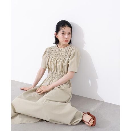 上半身に複数あしらったギャザーデザインがポイントのワンピースです。これからの季節、気になる二の腕をカバーしてくれる袖丈も嬉しい。1枚で様になるデザインは、小物などでニュアンスを加えるのもお勧めです。<詳細>仕様・後ろボタン裏地・スカートのみあり透け感・ややあり / 光沢・なし / 伸縮性・なし 生地の厚さ・普通※モデルの着用画像の場合、光の当たり具合により、実際の色味と異なって見えることがございます。色味は、商品単体の画像をご参照ください。