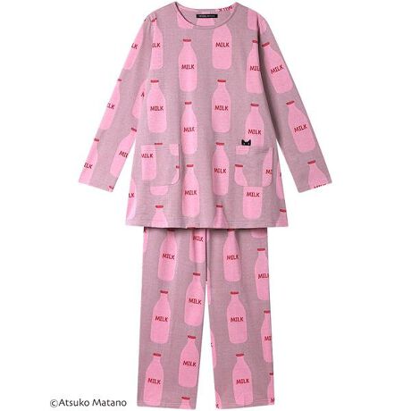 【パジャマ(ロング袖ロングパンツ)】クリエーター“俣野温子”氏がデザインする、甘くなりすぎない大人かわいいテキスタイルとカラーで、くつろぎ時間を楽しく過ごせるパジャマ&ルームウェア・ジャカード素材を使用・ミルク柄が楽しいテキスタイル・ポケットから顔をのぞかせている黒猫のアップリケがデザインポイント【サイズ詳細】M:身幅53.5cm 着丈72.0cm 身丈74.5cm 肩幅39.0cm 袖丈56.5cm ボトム脇丈95.0cm 裾まわり43.0cm ウエスト58.0cm ヒップ100.5cm 股下(レングス)67.5cmL:身幅57.5cm 着丈72.0cm 身丈74.5cm 肩幅40.5cm 袖丈56.5cm ボトム脇丈95.5cm 裾まわり45.0cm ウエスト63.0cm ヒップ104.5cm 股下(レングス)67.5cmLL:身幅61.5cm 着丈73.0cm 身丈75.5cm 肩幅42.0cm 袖丈57.0cm ボトム脇丈96.0cm 裾まわり48.0cm ウエスト68.0cm ヒップ109.5cm 股下(レングス)67.5cm※出来上がり寸法を表示しております※サイズ詳細の寸法には多少の差異がございます※アイテムによって柄の出方が異なりますのでご了承ください。