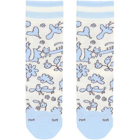 【ソックス】毎日をもっと楽しく過ごせるように。嬉しいとき。不安なとき。ひとりのとき。家族といるとき。どんなときでもHAPPYなものを身につけて、笑顔になってもらいたい。デザイナー“津森千里”氏のそんな気持ちを表現したブランドデザイナー津森千里氏が幼少期に大好きだった本の世界観をモチーフに森の中の動物や植物、夜空に輝く星座をテーマに表現した柄が豊富に揃っています。テーマ:春<ワンダーフォレスト>物語に登場する赤毛の女の子がよく遊ぶ森には不思議なお花がたくさん咲いています。そのお花に集まる鳥やキツネたちに出逢えるワンダーフォレストたくさんのオリジナリティあふれる図柄が、不思議な世界に誘います。・森の妖精たちの柄をジャカードで表現したソックス・つま先部分のネコの顔がデザインポイント
