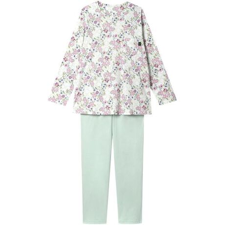 【パジャマ(ロング袖ロングパンツ)】1793年に誕生以来、代表される「ハドンホール」柄を始め、多くのコレクションを世に送り出し続けている「ミントン」。その気品あふれる美しい柄を使用したパジャマ。・本体に、生地表面の毛羽を取る特殊な加工をほどこした綿100%のスムース素材を使用・光沢感があり、しなやかな肌ざわり・タイル調の地模様に〈ハドンホール〉柄のブーケ風の花々を重ねた、動きと奥行きのあるデザイン・ボトムの両サイドにポケットあり※〈ハドンホール〉1948年にデザインされ、発売以来、世界中で愛されているロングセラーの図柄。パッションフラワー、パンジー、カーネーションなどが図案化され、東洋的なエキゾチシズムが感じられるデザイン[資料元:(株)川島織物セルコン]【サイズ詳細】S:身幅47.0cm 着丈64.0cm 身丈68.0cm 肩幅37.0cm 袖丈55.5cm ボトム脇丈95.0cm 裾まわり32.0cm ウエスト53.0cm ヒップ96.0cm 股下(レングス)68.5cmM:身幅51.0cm 着丈64.0cm 身丈68.0cm 肩幅38.0cm 袖丈56.0cm ボトム脇丈95.0cm 裾まわり34.0cm ウエスト58.0cm ヒップ99.5cm 股下(レングス)68.0cmL:身幅55.0cm 着丈64.0cm 身丈68.5cm 肩幅39.5cm 袖丈56.0cm ボトム脇丈95.5cm 裾まわり36.0cm ウエスト63.0cm ヒップ103.5cm 股下(レングス)67.5cmLL:身幅59.0cm 着丈65.0cm 身丈69.5cm 肩幅41.0cm 袖丈56.5cm ボトム脇丈96.0cm 裾まわり39.0cm ウエスト68.0cm ヒップ108.5cm 股下(レングス)67.5cm※出来上がり寸法を表示しております※アイテムによって柄の出方が異なりますのでご了承ください。