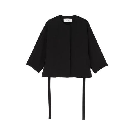 フロントはシンプルなノーカラージャケット、バックは背中に細かくランダムなタックが無数にとられてペプラムのようなデザインになっています。